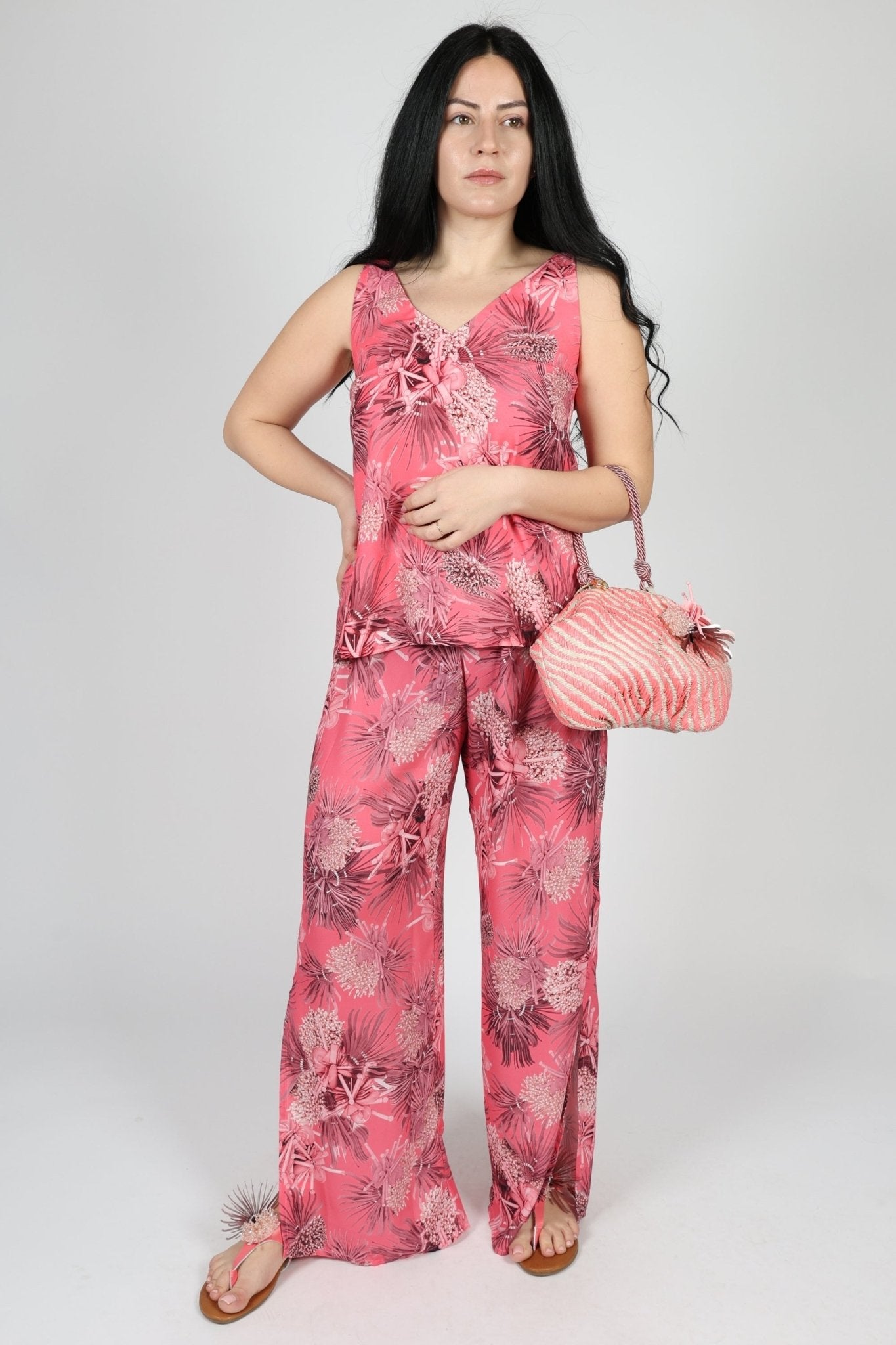 • Women's two-piece set - elegant V-neck tank top and wide-leg pants with a high waist and a flared silhouette