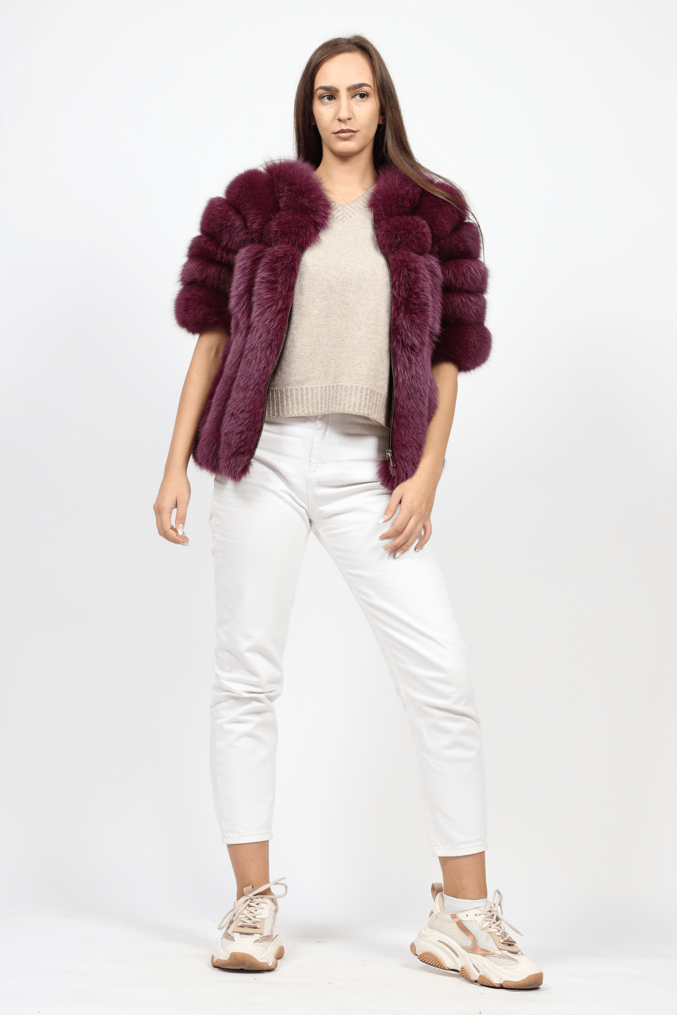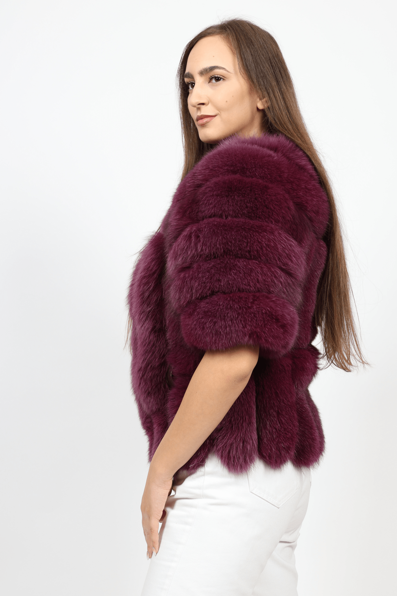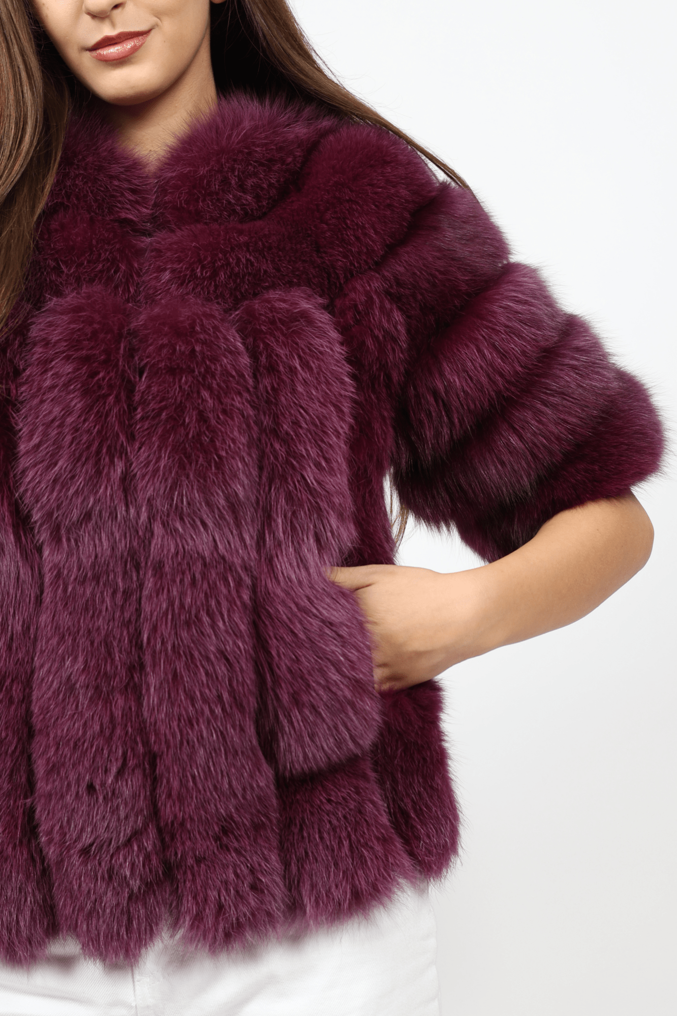 Дамско Палто с Косъм, Бургунди